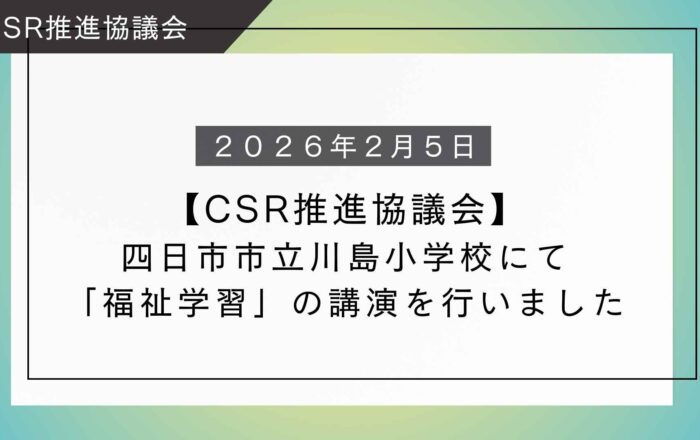 【CSR推進協議会】四日市市立川島小学校にて「福祉学習」の講演を行いました!2026年2月5日(木)、四日市市立川島小学校にて小学5年生の皆さんを対象とした講演を行いました。今回のテーマは「福祉学習」。母校でもある川島小学校の体育館で、未来ある後輩たちと充実した時間を過ごしました。実施概要日時:令和8年2月5日(木)13:15-15:15対象:小学5年生 計72名講師: