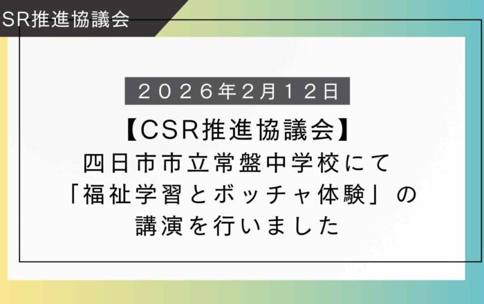 【CSR推進協議会】四日市市立常盤中学校にて「福祉学習とボッチャ体験」の講演を行いました!令和8年2月12日、四日市市立常盤中学校にて1年生196名を対象に講演を行いました。今回は「頸髄損傷と共に生きる」をテーマに、自身の経験を通じた講話とパラスポーツ「ボッチャ」の体験学習を実施しました。実施概要日時:令和8年2月12日(木)13:30-15:10対象:中学1年生 計1