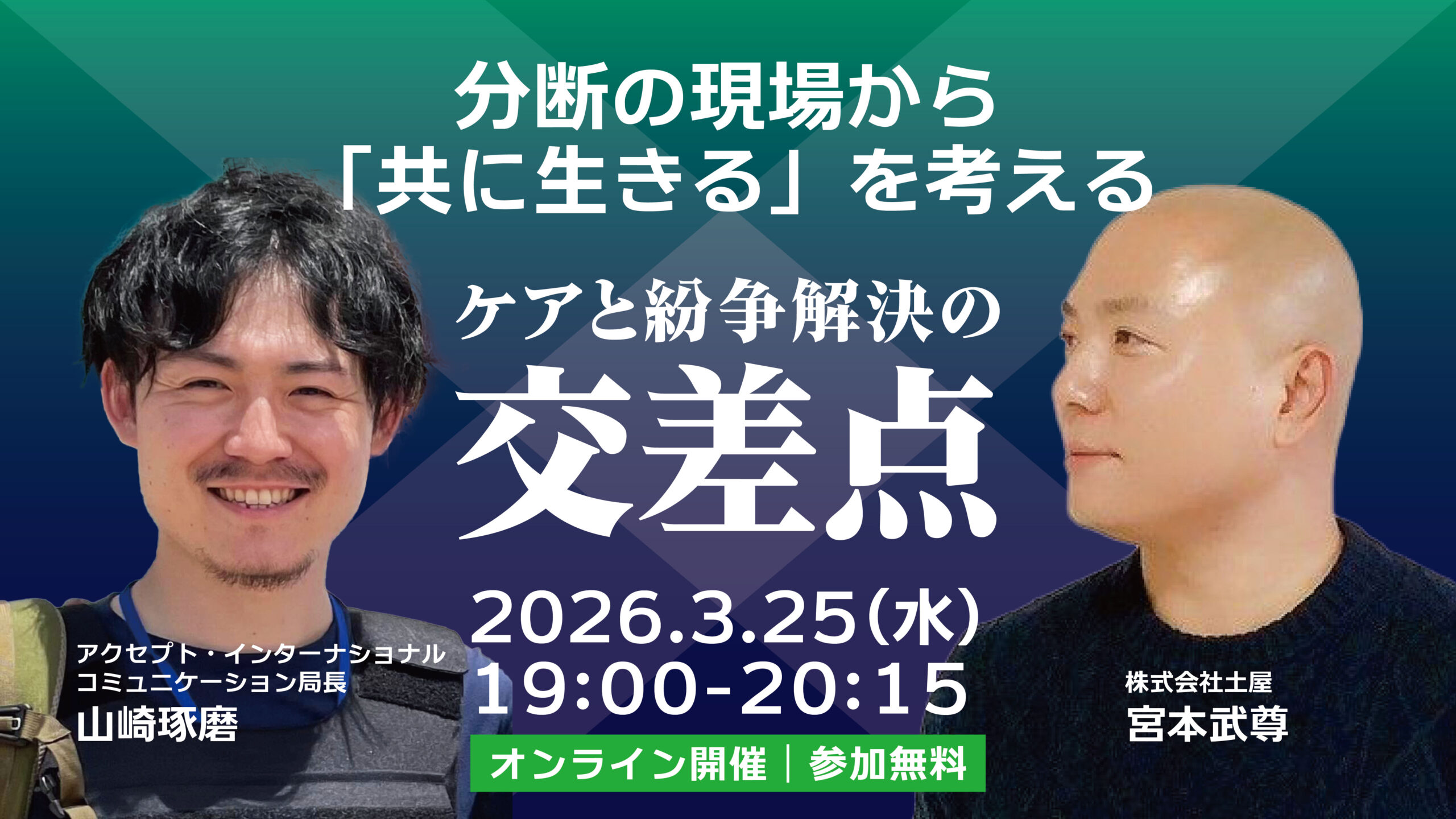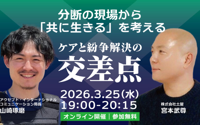 【イベントのお知らせ】土屋が紛争解決支援のNPO・アクセプト・インターナショナルを ゲストに招いたトークイベントを開催のお知らせ