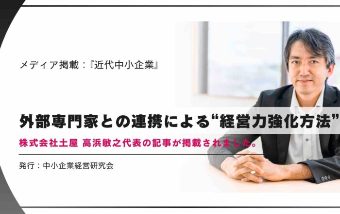本稿では、外部専門家の選び方、社内の位置づけとともに、協働による経営力強化の事例や費用対効果について株式会社土屋の高浜敏之代表が詳しく解説しています。