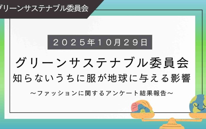 【グリーンサステナブル委員会】知らないうちに服が地球に与える影響 ~ファッションに関するアンケート結果報告~はじめに私たちの生活に「服」は欠かせません。身体を保護するのみならず、新しい服を買ったときの高揚感、季節に合わせて選ぶ楽しみは、誰にとっても身近なものです。けれど、その「身近さ」の裏で、衣服産業が地球環境や社会に大きな負荷を与えていることは、意外と知られていません。今