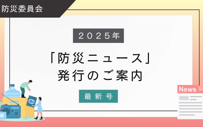 土屋防災委員会より「防災ニュース」最新号掲載のご案内です土屋防災委員会より防災ニュース最新号が発行されました。土屋防災委員会では防災意識の向上と皆様の安全の確保を目的とした「防災ニュース」を発行しております。「防災ニュース」をダウンロード、またはフルワイドで確認する場合は下記リンクをご覧ください。「防災ニュース」のダウンロードはこちら※過去配信分は下記をご覧ください