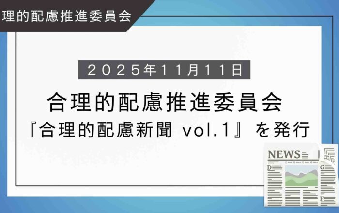 合理的配慮の意識向上と誰もが働きやすい環境の確保を目的とした「合理的配慮新聞」vol.1が発行されました。合理的配慮推進委員会より「合理的配慮新聞」vol.1掲載のご案内です。この度、合理的配慮推進委員会から合理的配慮の意識向上と皆様の安全・安心の確保を目的とした「合理的配慮新聞」を発行することになりました。「合理的配慮新聞」をダウンロード、またはフルワイドで確認す