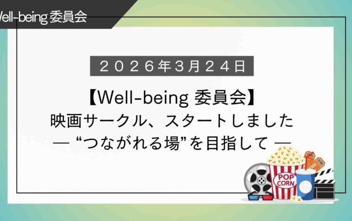 映画サークル、スタートしました― “つながれる場”を目指して ―Well-being委員会では、社内アンケートで寄せられた声を受け、映画サークルを立ち上げました。「おすすめの映画を知りたい」「映画の感想を共有したい」「テーマを決めて語ってみたい」「でも、ゆるく参加したい」参加者からはそんな声が上がっています。2026年3月には、キックオフ説明会を実施し、サークルの目的や活動内容