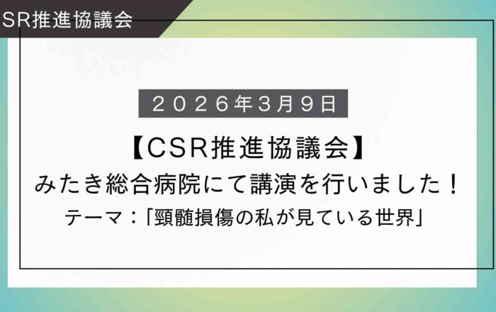 【CSR推進協議会】みたき総合病院にて講演を行いました!令和8年3月9日(月)、みたき総合病院にて医療従事者の皆様(看護師、介護士、リハビリ職、ソーシャルワーカー等 約25名)を対象とした講演を行いました。実施概要日時:令和8年3月9日(月) 16:30-17:15対象:医療従事者 約25名講師:CSR協議会サポート部 青木健太テーマ「頸髄損傷の私が見ている世界」