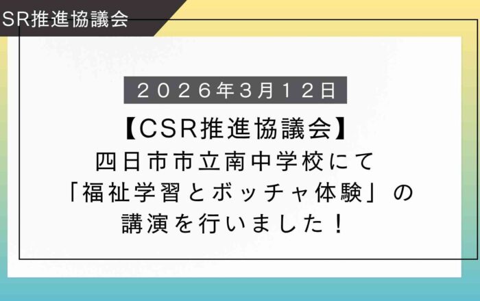 【CSR推進協議会】四日市市立南中学校にて「福祉学習とボッチャ体験」の講演を行いました!令和8年3月12日、四日市市立南中学校にて1年生212名を対象に講演を行いました。今回は「頸髄損傷と共に生きる」をテーマに、自身の経験を通じた講話とパラスポーツ「ボッチャ」の体験学習を実施しました。実施概要日時:令和8年3月12日(木)13:30-15:10対象:中学1年生 計212