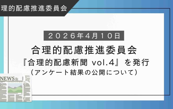 【合理的配慮推進委員会】合理的配慮新聞vol.4(アンケート結果)の公開について合理的配慮推進委員会より、先日実施いたしました「合理的配慮に関するアンケート」の集計結果公開のご案内です。この度、合理的配慮推進委員会では、社内における合理的配慮の浸透度の把握を目的としてアンケートを実施いたしました。皆様のご協力により、総数671件という多くの貴重な回答をいただくことができまし