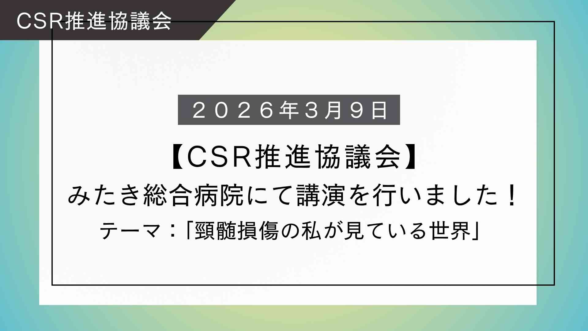 【CSR推進協議会】みたき総合病院にて講演を行いました!