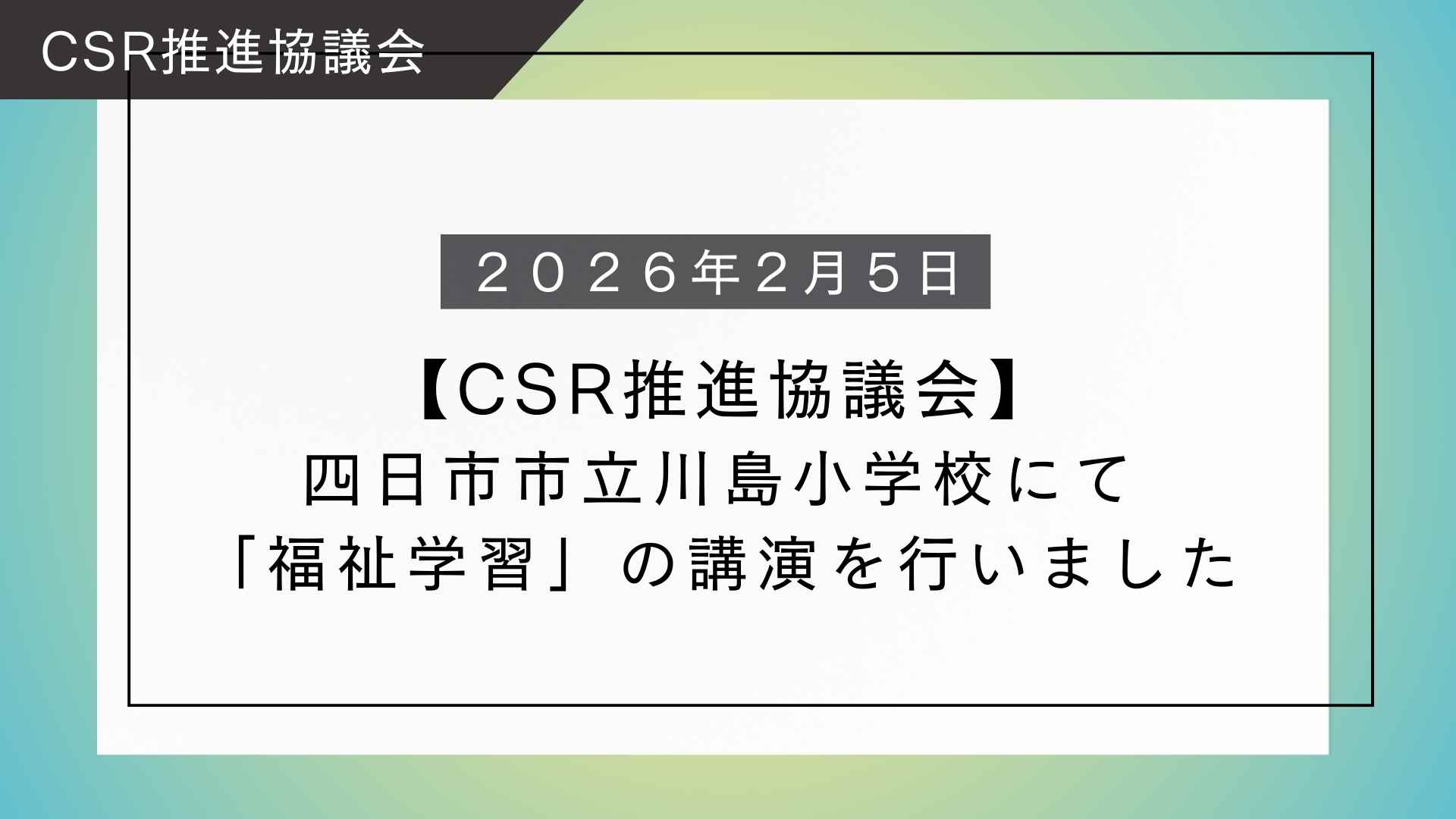 【CSR推進協議会】四日市市立川島小学校にて「福祉学習」の講演を行いました!