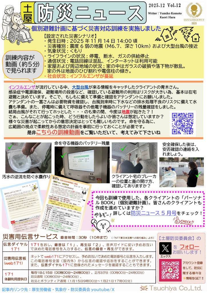 また土屋グループ全体での防災活動の活性化にも寄与することを目指しております。