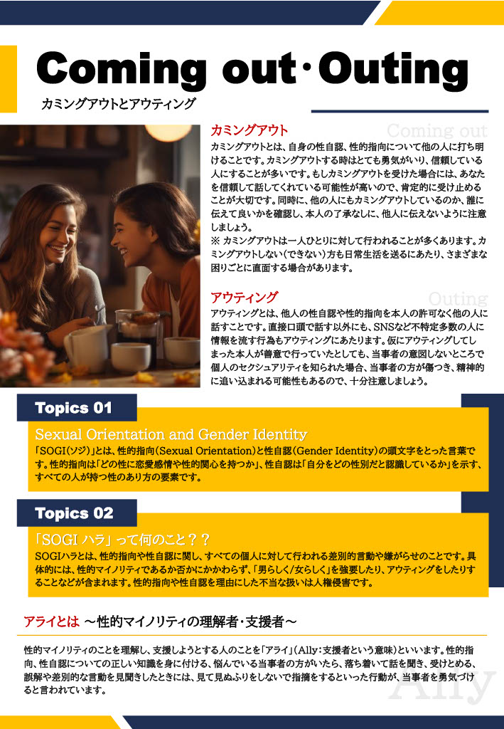 性の4要素、LGBTQ+の多様なセクシュアリティ、カミングアウト/アウティング、SOGI、アライなど、職場で大切にしたいポイントをわかりやすく紹介しています。