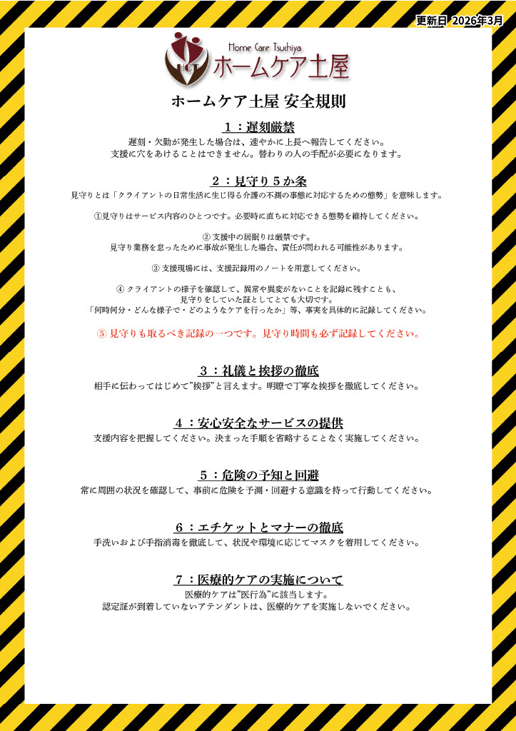 安全規則は、ホームケア土屋における「最低基準」です。